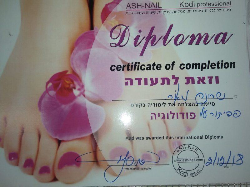 פדיקורסטית מאסטר על פי הפודולוגיה, ומשנת 2013 לימודי התמחות במקרים רפואיים בלבד.